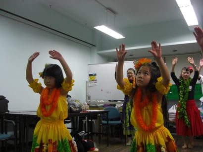 フラダンスは優雅に見えますが、実はとても運動量が多いので、シェイプアップ効果も期待でき、足腰が強くなります。出前公演には、子どもも一緒に踊りに行きます。「大人ばかりで踊るのとでは、反応がビックリするほど違うんです。子ども達が踊る姿と笑顔には本当に癒されるようで、観た人が自然と笑顔になるんです」最初は人前で踊ることに抵抗があった子ども達も、今ではすっかりフラダンサー!現在、メンバー募集中! 親子で、または、おばあちゃんとお孫さんと一緒にご参加頂ける方大歓迎です。練習は月2回、みんなで楽しく踊りましょう。