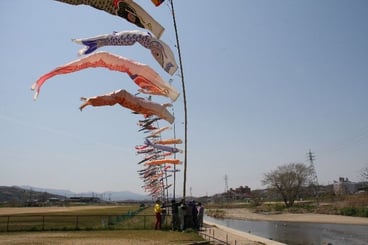 「NPO 法人夢の会は、毎年4月第2日曜日から5月第2日曜日の一ヶ月間、富田林市を流れる一級河川「石川」の河川敷において、数百匹の鯉のぼりをあげる活動を行なっています。